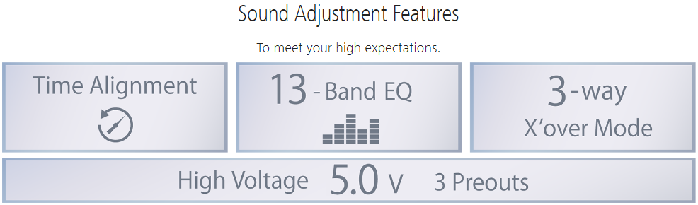 Use the graphic equalizer to tailor the sound quality to your unique tastes. Additional sound staging is available with the Time Alignment feature, designed to provide optimal sound performance.